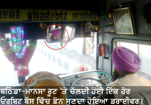 ਪੰਜਾਬ ਹੀ ਨਹੀਂ ਦੇਸ਼ ਦੇ ਟਰਾਫਿਕ ਨਿਯਮਾਂ ਮੁਤਾਬਕ ਡਰਾਈਵਿੰਗ ਕਰਦਿਆਂ ਮੋਬਾਇਲ ਫੋਨ ਸੁਣਨਾ ਗੈਰ ਕਾਨੂੰਨੀ ਹੈ, ਇਸ ਦਾ ਗਿਆਨ ਸ਼ਾਇਦ ਸੱਤਾਧਾਰੀਆਂ ਦੇ ਥਾਪੜੇ ਹੇਠ ਕੰਮ ਕਰ ਰਹੇ ਬਾਦਲਕਿਆਂ ਦੇ ਨਿੱਜੀ ਕਰਿੰਦਿਆਂ ਨੂੰ ਨਹੀਂ, ਪਰ ਲੋਕਤੰਤਰ ਦੇ ਅਹਿਮ ਥੰਮ੍ਹ ਦਾ ਹਿੱਸਾ ਪੱਤਰਕਾਰਾਂ ਨੂੰ ਤਾਂ ਹੈ, ਇਸੇ ਕਰਕੇ ਸਵਾਰੀਆਂ ਦੀ ਜ਼ਿੰਦਗੀ ਨਾਲ ਖੇਡ ਰਹੇ ਓਰਬਿਟ ਦੇ ਡਰਾਈਵਰ ਦੀ ਫੋਨ ਸੁਣਦਿਆਂ ਤੇ ਲਾਪਰਵਾਹੀ ਨਾਲ ਤੇਜ਼ ਰਫਤਾਰ ਨਾਲ ਬੱਸ ਚਲਾਉਂਦੇ ਦੀ ਸਾਡੇ ਪੱਤਰਕਾਰ ਨੇ ਫੋਟੋ ਖਿੱਚਣ ਦੀ ਹਿਮਾਕਤ ਕਰ ਲਈ ਤਾਂ ਓਰਬਿਟ ਦਾ ‘ਸਟਾਫ਼’ ਭੜਕ ਗਿਆ। ਫਲੈਸ਼ ਵੱਜਣ ’ਤੇ ਉਹ ਕਹਿਣ ਲੱਗੇ ‘ਓਏ ਤੂੰ ਕੌਣ ਹੁੰਦਾ ਏ. . ਸਾਡੀ ਫੋਟੋ ਲੈਣ ਵਾਲਾ।’’