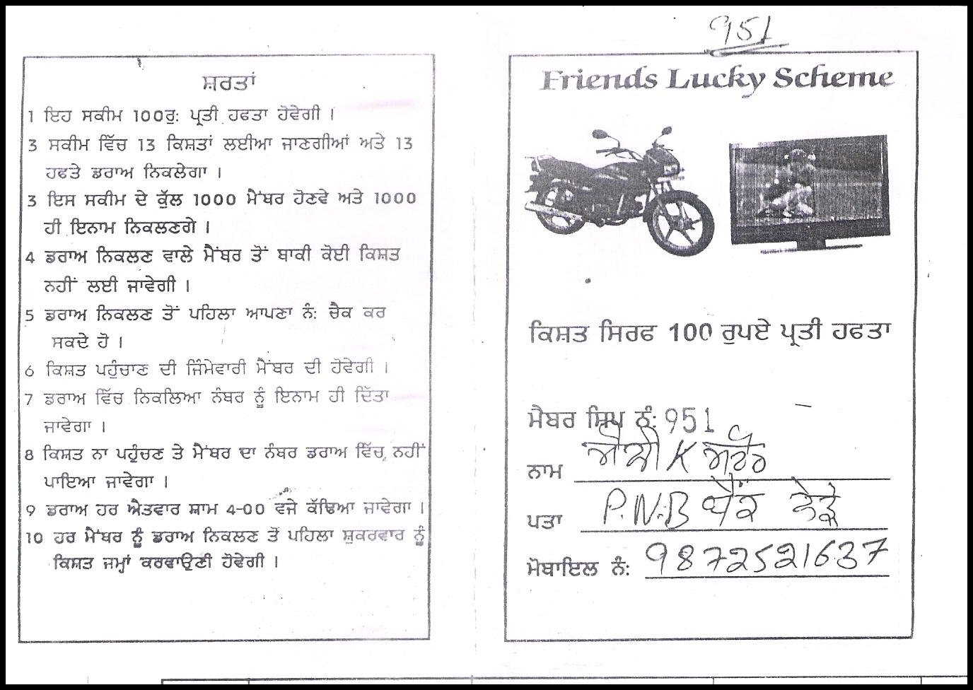 ਲੱਖ ਦਾਤਾ ਸਮਾਰਟ ਸ਼ੌਪੀ, ਮਾਲਾਮਾਲ ਲਾਟਰੀ ਸਕੀਮ, ਫਰੈਡਜ ਲੱਕੀ ਸਕੀਮ ਆਦਿ ਨਾਵਾਂ ਤੇ