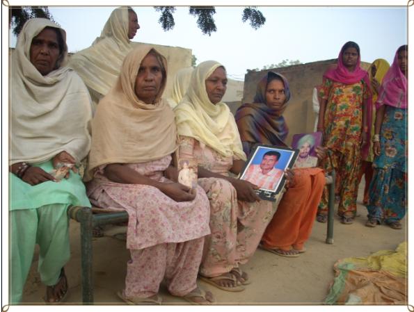 ‘‘ਜ਼ਿਮੀਂਦਾਰਾਂ ਦੇ ਖ਼ੇਤਾਂ ਵਿੱਚ ਦਸ ਸਾਲ ਦਿਨ ਰਾਤ ਘੱਟਾ ਢੋਹਣ ’ਤੇ ਵੀ ਇਹ ਕਰਜ਼ਾ ਵੱਧਦਾ ਹੀ ਗਿਆ ਅਤੇ ਅਖ਼ੀਰ ਮਾੜੇ ਕਰਮਾਂ ਵਾਲੇ ਦੀ ਜਾਨ ਲੈ ਲਈ ਪਰ ਇਹ ਸਾਡਾ ਖਹਿੜਾ ਹੁਣ ਵੀ ਨਹੀਂ ਛੱਡ ਰਿਹਾ। ਇਹ 13 ਤੇ 15 ਸਾਲ ਦੇ ਦੋ ਮੁੰਡੇ ਨੇ, ਇਨ੍ਹਾਂ ਨੂੰ ਜੰਮਦਿਆਂ ਹੀ ਕਰਜ਼ੇ ਨੇ ਜਾਲ ਵਿੱਚ ਫਸਾ ਲਿਆ। ਵੱਡੀ ਕੁੜੀ 17 ਸਾਲ ਦੀ ਵਿਆਹ ਦਿੱਤੀ ਹੈ।’’ ਸੰਖੇਪ ਜਿਹੀ ਗੱਲ ਵਿੱਚ ਹੀ ਆਪਣੇ ਦੁੱਖ ਬਿਆਨ ਕਰਦੀ ਵਿਧਵਾ ਮਜ਼ਦੂਰ ਛਿੰਦਰ ਕੌਰ ਦਾ ਰੋਣਾ ਨਹੀਂ ਠੱਲਿਆ ਜਾ ਰਿਹਾ। ਉਸ ਦੇ ਪਤੀ ਸੁੱਚਾ ਸਿੰਘ ਦੀ ਕਿਰਤ ਦਾ ਸੁੱਚਾਪਣ ਨਾ ਚੱਲਿਆ। ਵਿਆਹ ਤੋਂ ਦਸ ਸਾਲ ਮਗਰੋ ਹੀ 35 ਸਾਲ ਦੀ ਉਮਰ ਵਿੱਚ 40-45 ਹਜ਼ਾਰ ਰੁਪਏ ਕਰਜ਼ਾ ਨਾ ਲਹਿਣ ਕਾਰਣ ਉਸ ਨੇ ਘਰ ਵਿੱਚ ਹੀ ਫ਼ਾਹਾ ਲੈ ਲਿਆ, ਹਾਲਾਂਕਿ ਉਹ ਲਗਾਤਾਰ ਦਸ ਸਾਲ ਉਸ ਕਿਸਾਨ ਦੇ ਖ਼ੇਤਾਂ ਦਾ ਪੁੱਤ ਰਿਹਾ ਸੀ। ਗਰੀਬ ਪਰਿਵਾਰ ਕਿਸਾਨਾਂ ਦੇ ਦਿਹਾੜੀ ਆਦਿ ਕਰਦਾ ਹੈ ਅਤੇ ਛਿੰਦਰ ਹੋਰਨਾਂ ਕਿਰਤੀ ਔਰਤਾਂ ਵਾਂਗ ਹੀ ਗੋਹਾ-ਕੂੜਾ ਢੋਂਹਦੀ ਹੈ।
